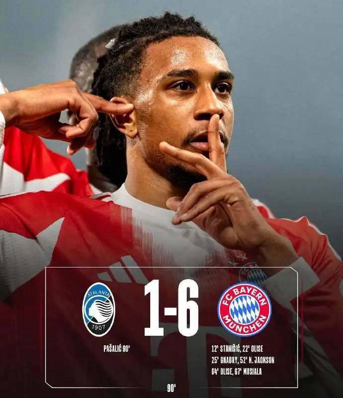 从比赛走势看,这根本不像是一场平衡的对决,而更像是老将带着初出茅庐的小将完成的展示赛。开场仅12分钟,拜仁由斯塔尼希奇利用角球战术快速洞穿了亚特兰大的防线,瞬间打开潘多拉魔盒。紧接着,“左脚魔术师”奥利塞燃起狂热状态,他全面爆发传射建功,内切兜射连连得分,把亚特兰大的后防线打得千疮百孔,如同清晨人迹稀少的街道那般畅通无阻。格纳布里、雅克松、穆西亚拉等人轮番发动猛攻,下半场的场面几乎沦为拜仁单方面的练兵舞台。